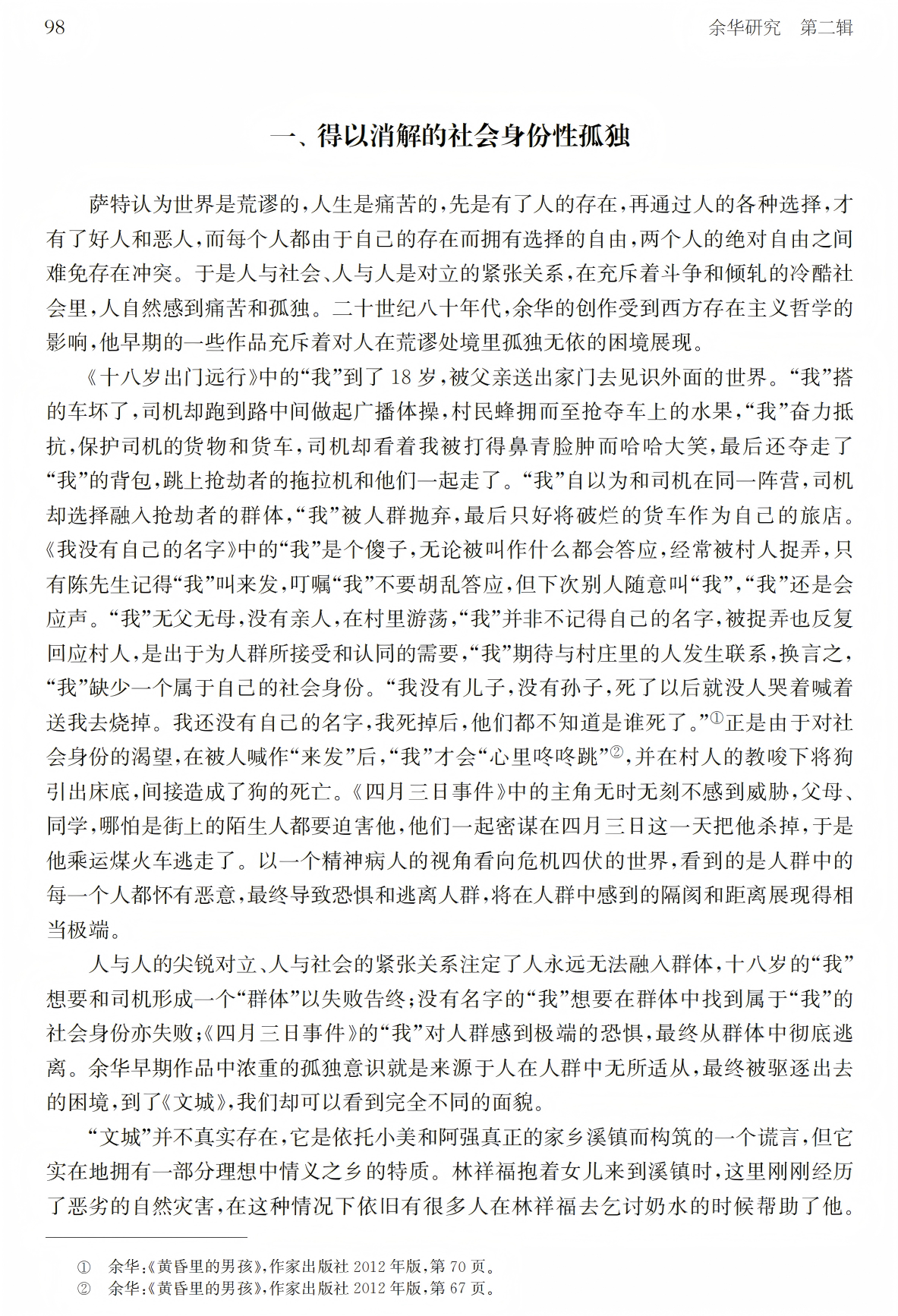 (本文刊发于浙江师范大学余华研究中心、海盐县社会科学界联合会主办,高玉主编:《余华研究》第2辑,南京大学出版社,2025年1月,第97页至第104页)