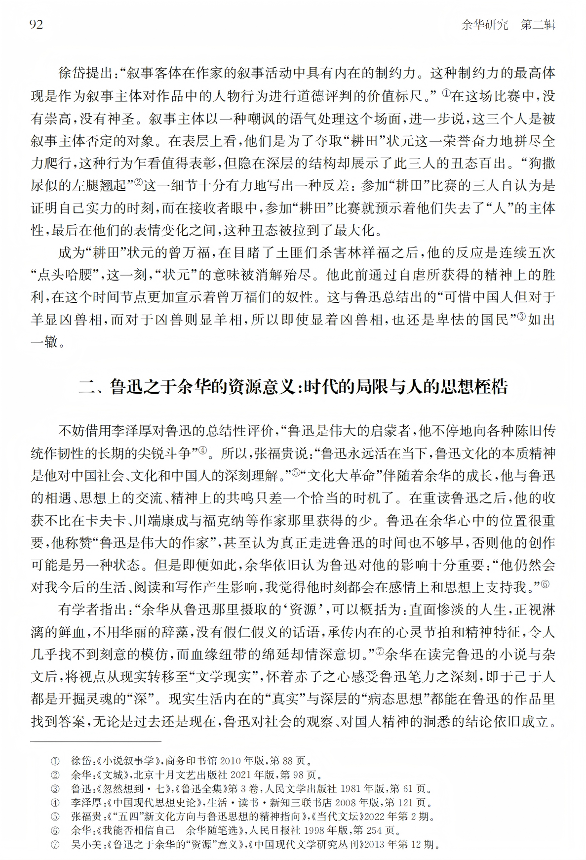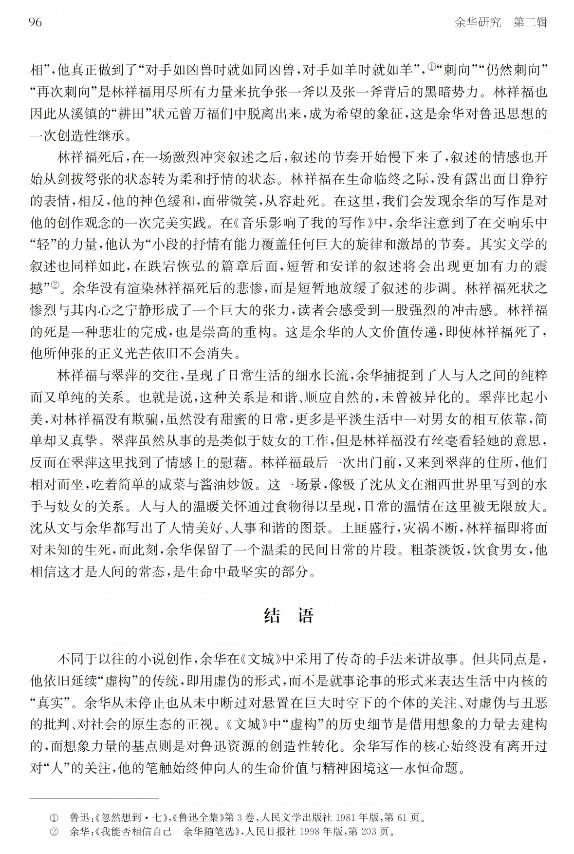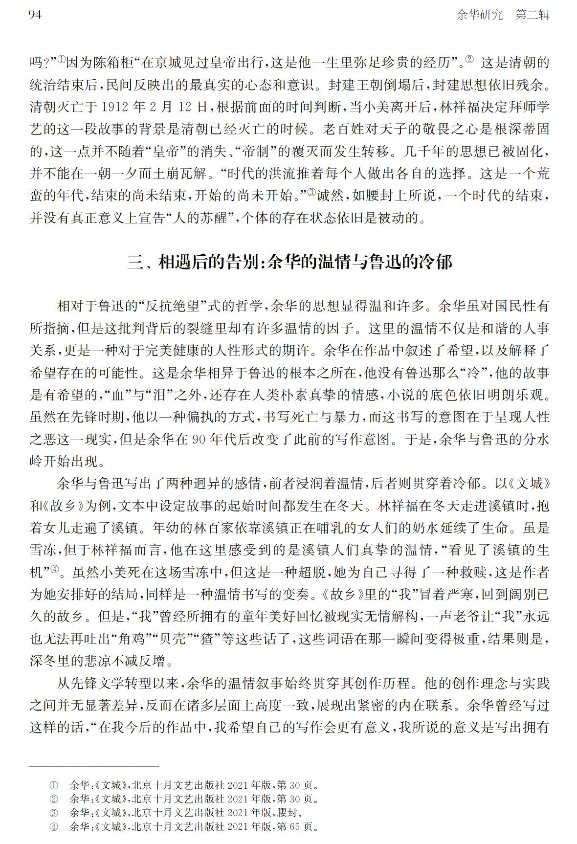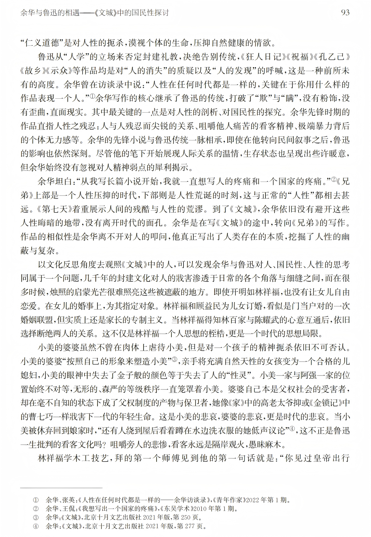 关键词:余华 鲁迅 《文城》 国民性 人性
