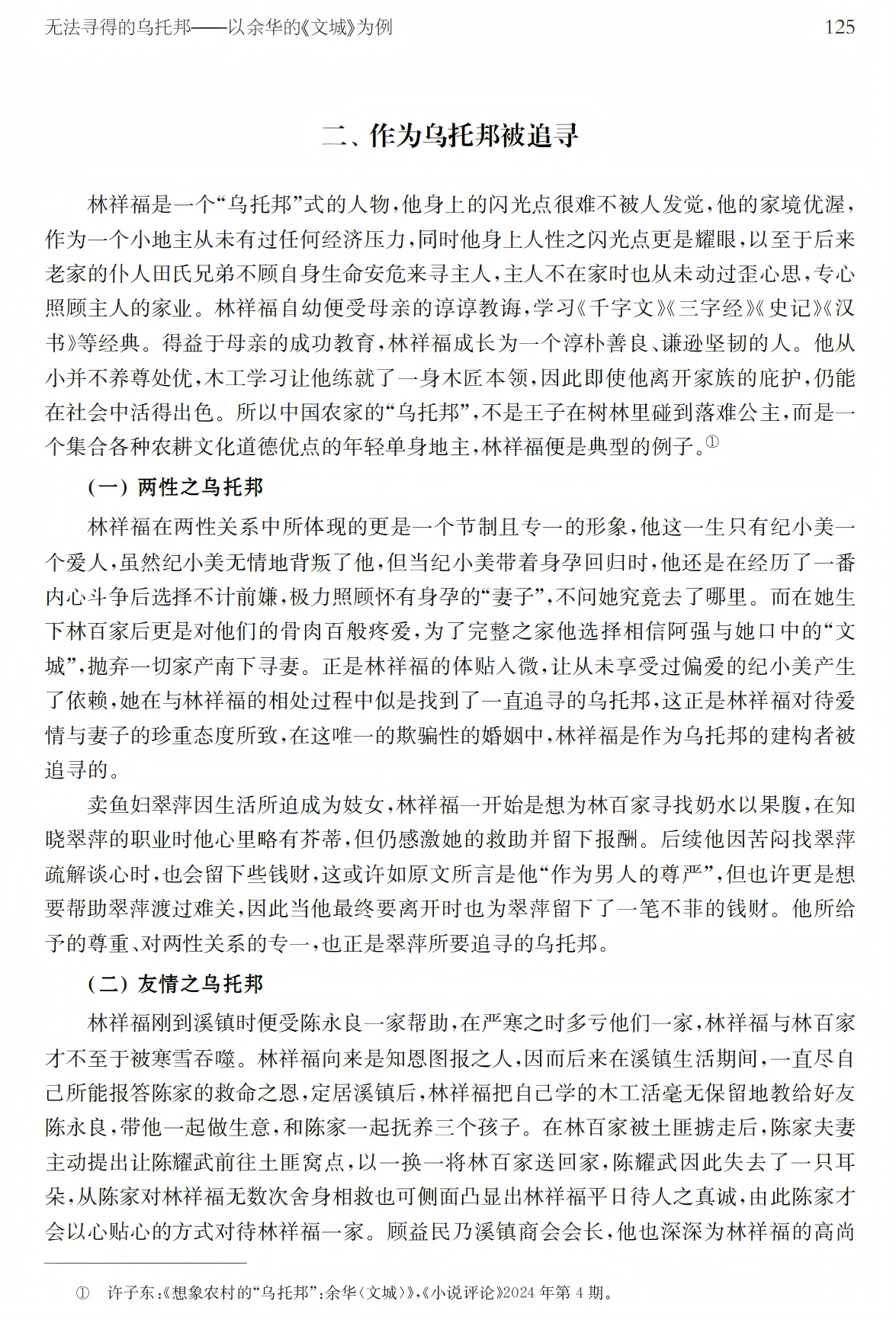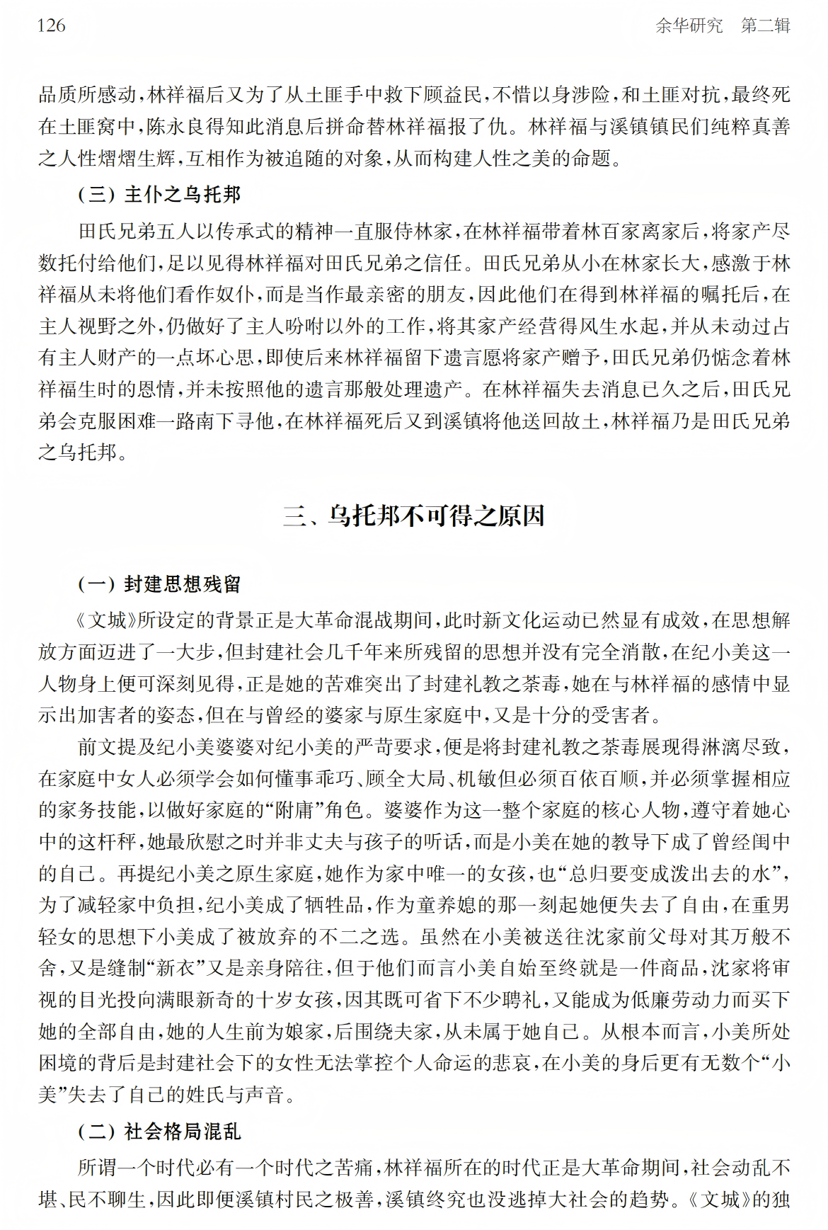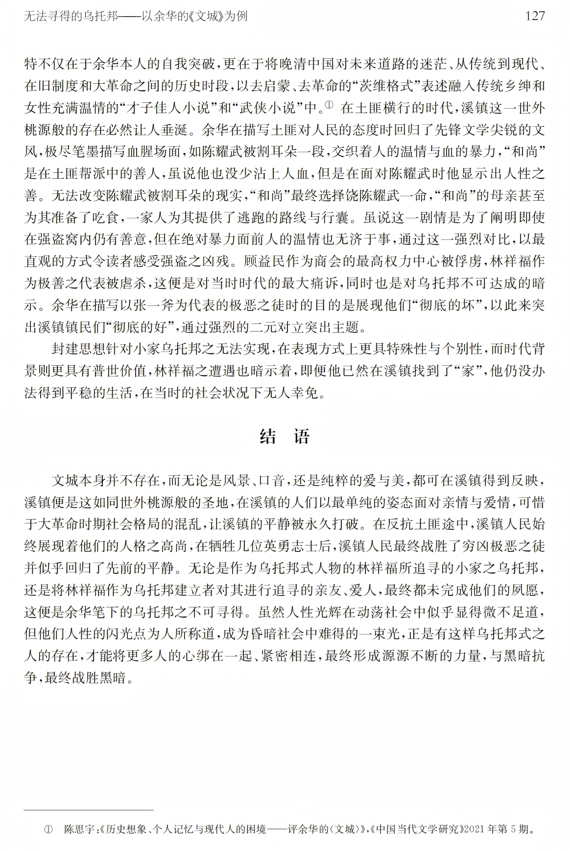 关键词:余华《文城》乌托邦家