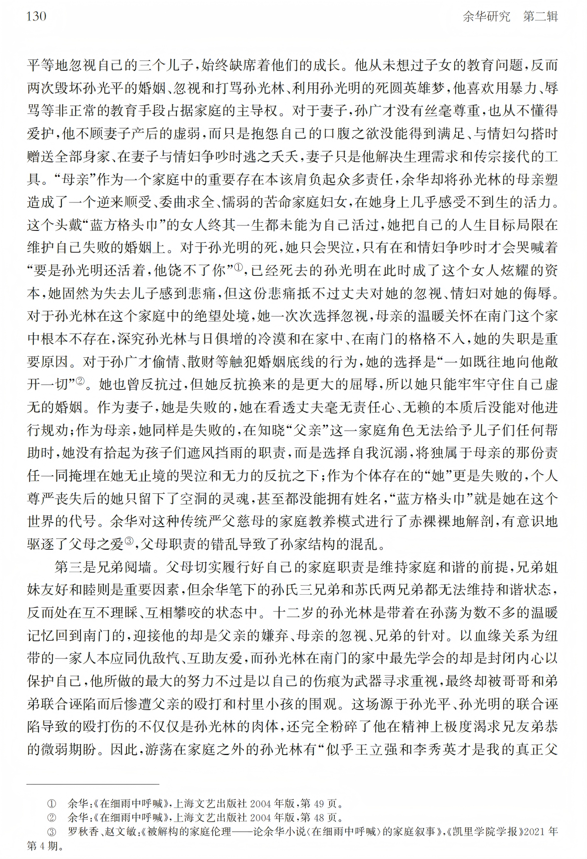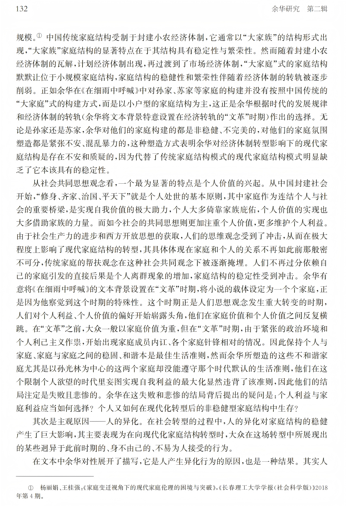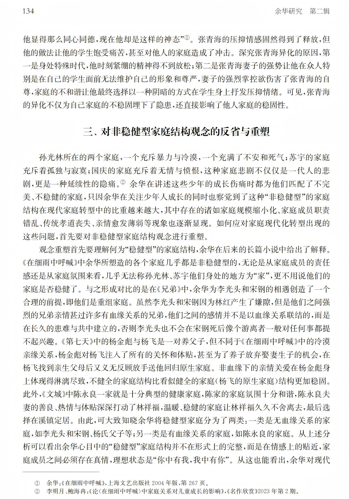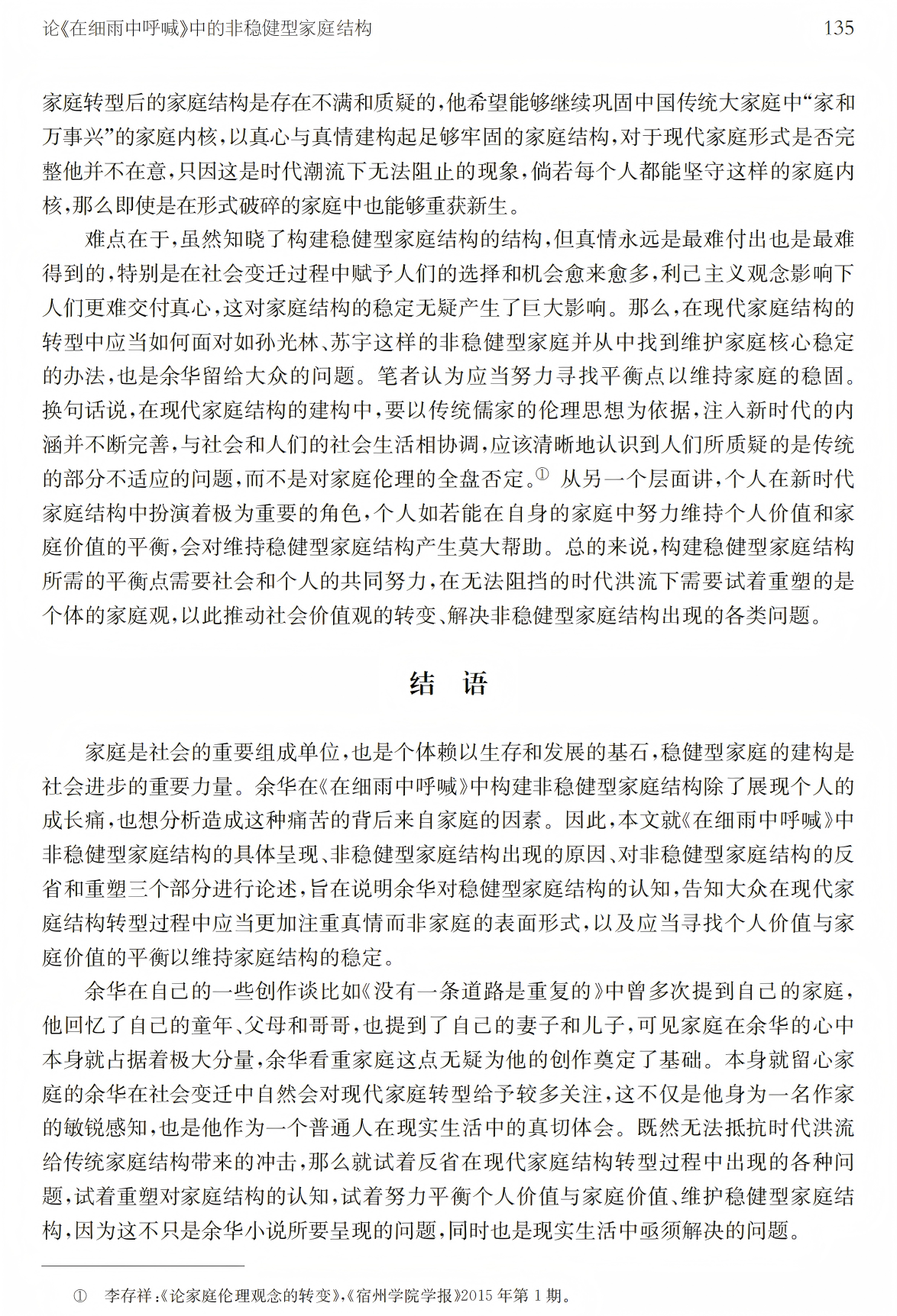 关键词:余华 《在细雨中呼喊》 家庭结构 非稳健型